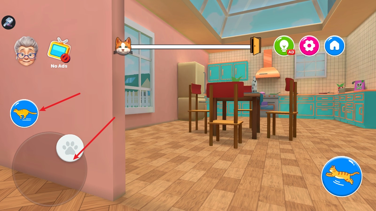 当我们靠近物品时,猫爪按钮便会出现,点击该按钮就能推动物品。