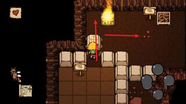 最后走到提示板旁边,按照开门的提示点燃右边的柴堆,就能打开右侧的门了。
