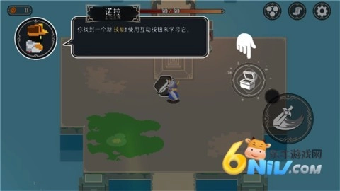 右侧的攻击键是用来攻击敌人的,把敌人消灭后能得到装备,点击互动键就能捡起装备并学习它。