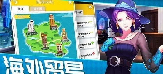 是一款剧情角色扮演游戏,游戏中小伙子为了娶到白富美,在一家很神秘的公司底层做起,而且不断地努力埋头苦干,经过长期的奋斗,心里一直有一个梦想,想要成为世界的首富,玩家们在这里可以体验一下商业的海外贸易,画面中的小伙子成为一个商业谈判角色人物,非常的很有意思,还能使用商业联姻作为目的,并与角色中的白富美一起开创世界商场发展。