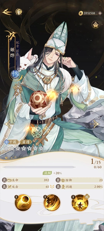 姜恒在战斗时兼具攻击与支援能力,其普攻“笔伐”可对单个目标造成伤害;大招“回神隐”不仅能对全体目标发起攻击,还能为队友提供生命回复的支援效果。此外,他的被动技能“成武不屈”赋予了自身持续回血的能力,有效提升了生存韧性。
