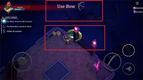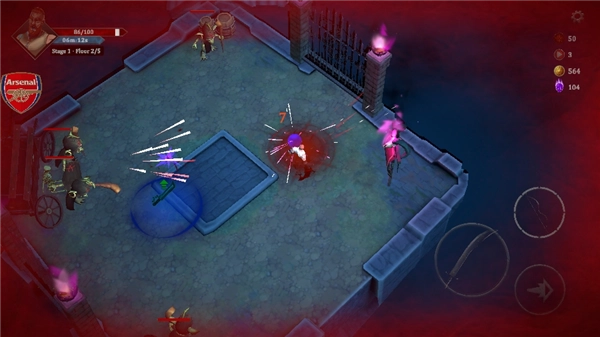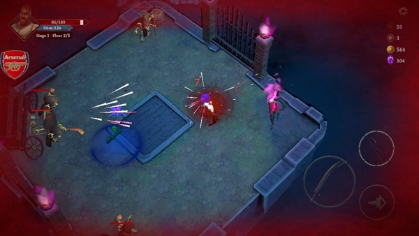 在游戏关卡里,玩家可借助摇杆操控角色的移动方向,同时利用主武器、副武器对应的攻击按键以及闪避按键来完成战斗操作。