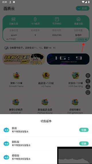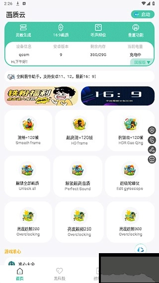 切换不同的工具使用,辅助游戏画质调整优化