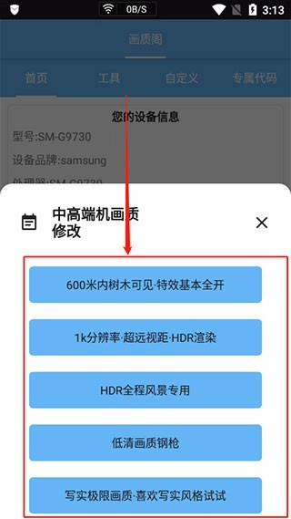 接着选择后会弹出想要修改的地方,点击对应位置就能进行修改,这里推荐低画质钢枪,体验感非常畅快。