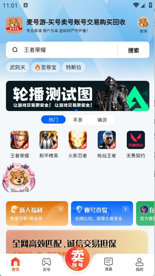 汇聚王者荣耀、和平精英等众多热门游戏账号交易。