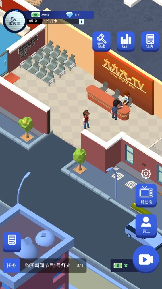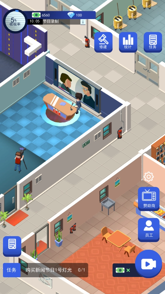 这是一款以电视台运营为主题的模拟经营游戏,玩家将化身为电视台的经营者,通过策划制作热门节目提升频道收视表现,同时合理调配团队成员的工作安排,并逐步解锁和升级电视台内的各类功能区域。欢迎对这类题材感兴趣的朋友前来体验。