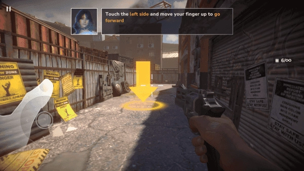 点击游戏图标后,即可进入游戏界面。在游戏中,右侧区域用于调整你的视线方向以及武器的瞄准角度。