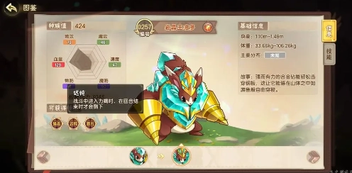 在对战场景里,这只冰系巨兽堪称火、爆、水、龙四系法术型战宠的克星,同时还能为钢、电属性的同伴提供辅助,具备减速、冰冻控制以及磁化干扰的多重能力。