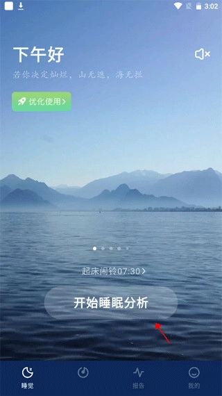 在软件中完成账号登录操作后,找到睡眠相关功能区域,点击其中用于启动睡眠监测分析的按钮。