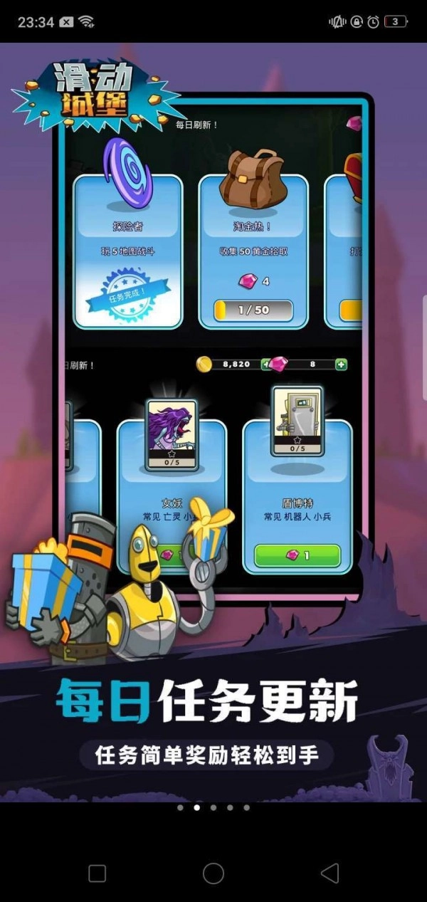 滑动城堡最新版是一款西方魔幻题材的动作冒险游戏,它巧妙融合了休闲放置与策略塔防玩法,不仅有唯美精致的魔幻画风供你沉浸体验,还有隐藏宝藏等待探索,丰富内容等你来畅玩!感兴趣的话不妨一试!滑动城堡作为一款欧美风格的塔防游戏,多样兵种可供解锁参战,海量关卡支持你逐步提升等级挑战Boss;超70个游戏角色可让你慢慢熟悉培养,更具备战略布局的核心玩法——5个独立派系下,涵盖70位独特的角色、英雄与塔楼。此外,游戏设有丰厚的每日任务和商人特惠福利,闯关成功还能赢取宝箱,钻石碎片奖励拿到手软!
