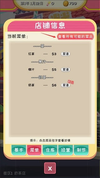 游戏现在只有一家饮品店可供体验,后续会陆续推出更多贴近生活的店铺类型,像麻辣烫、烘焙屋、煎饼果子这类都在计划中。要是你有什么好的想法(比如家乡特色美食),也欢迎分享给我,说不定之后就能在游戏里制作这些美食啦