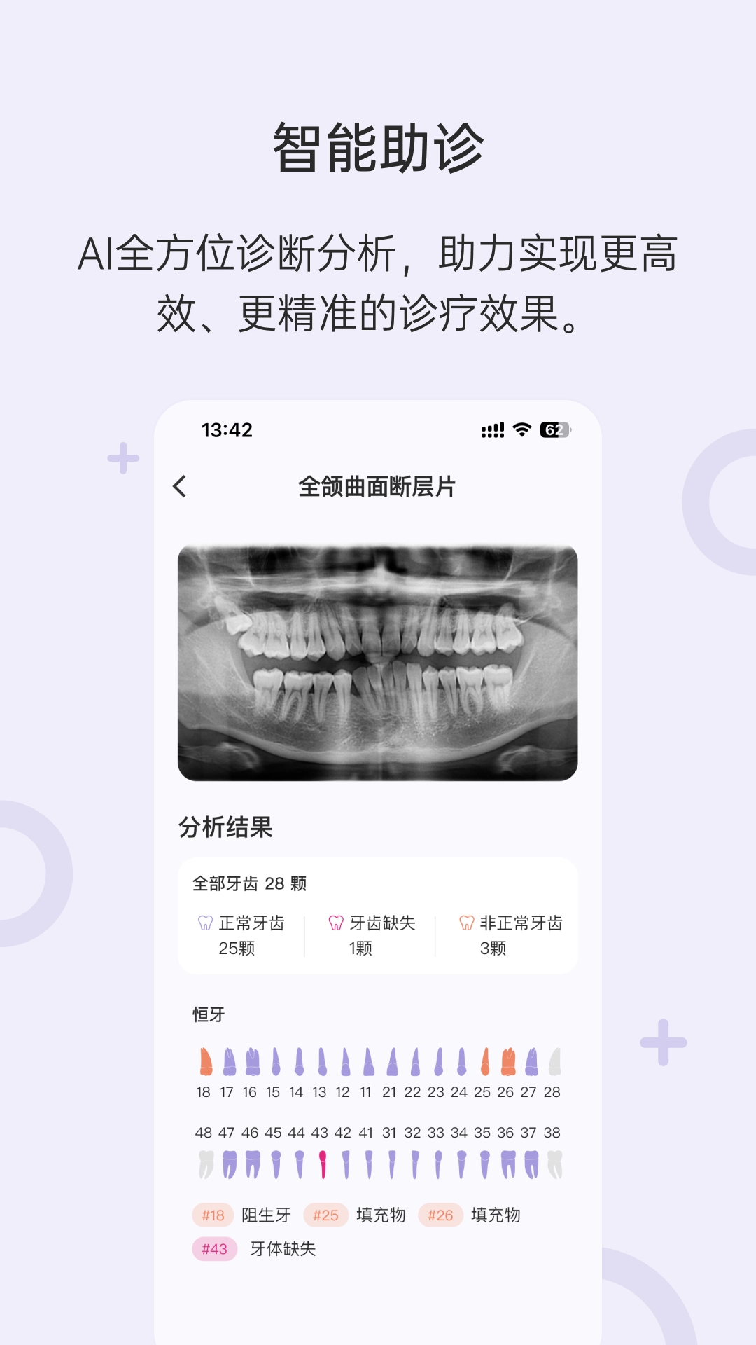这款专为牙科场景打造的移动应用,能让用户便捷预约看牙或检查项目;医生端则支持发送治疗日程提醒、用药指导,还能和患者实时在线交流,系统会自动生成专业诊断报告,有需求的朋友不妨体验一下。