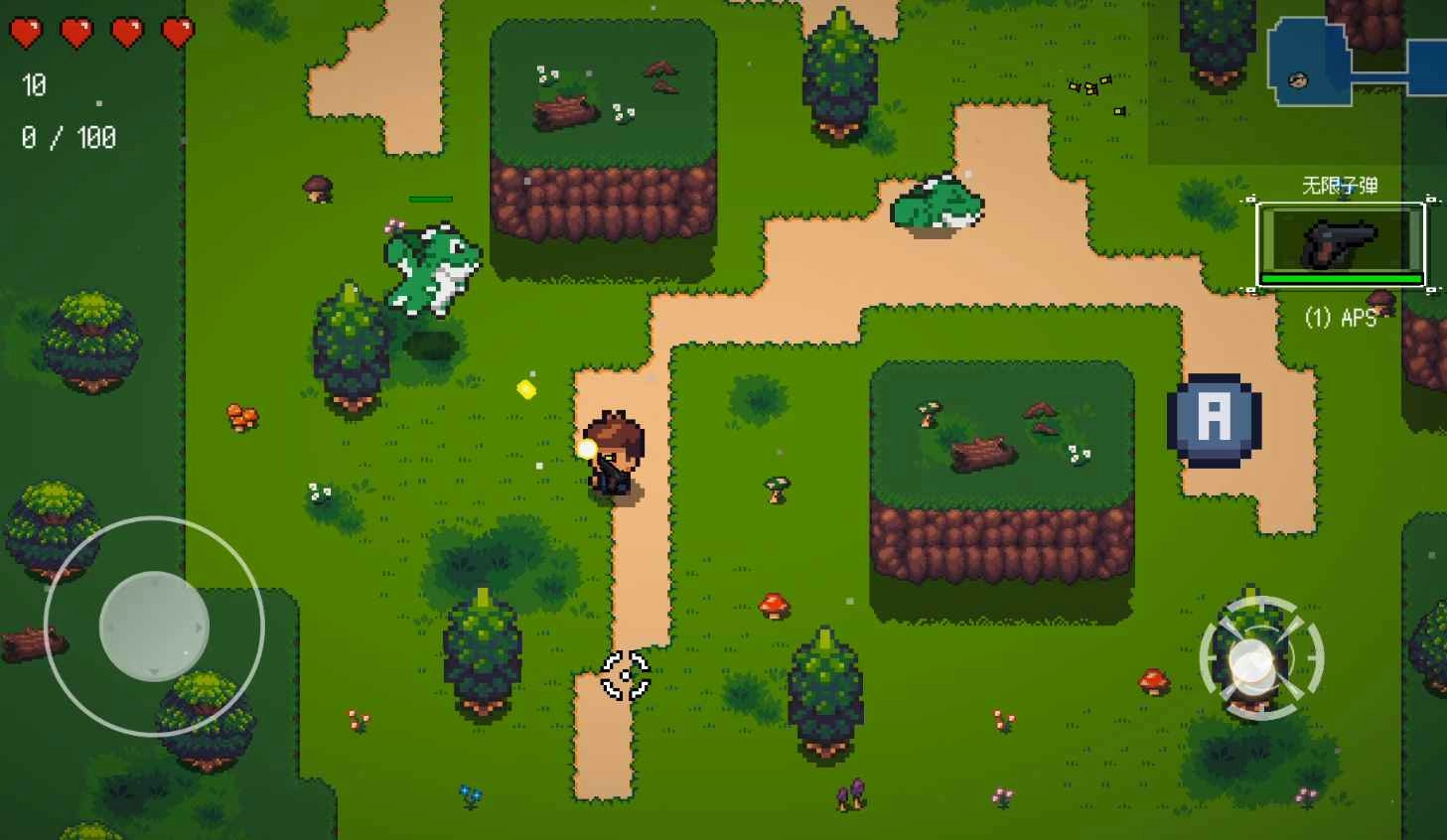 这是一款2D地牢肉鸽弹幕游戏,当前目标是找到传送门返回小镇,不过即便死亡也能回到小镇。