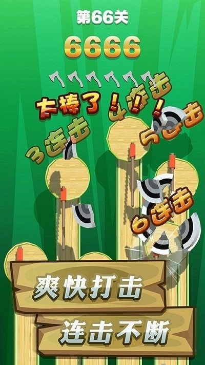 这个游戏的操作方式很容易上手,你只需要操控手中的飞斧,精准地投向指定的目标。每一次成功命中都会为你积累分数,当分数达到要求或者完成特定的目标条件后,就能顺利进入下一个关卡继续挑战。