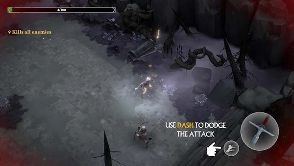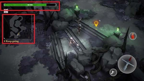 进入灵魂猎手地牢游戏后,左手控制角色移动;