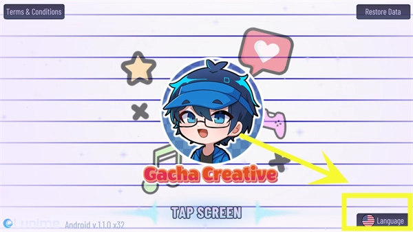 在这个平台完成加查创意的下载与安装操作后,启动游戏会发现界面语言初始状态为英文,此时需点击界面右下角的对应按钮来进行后续设置,具体位置可参考下方图示。