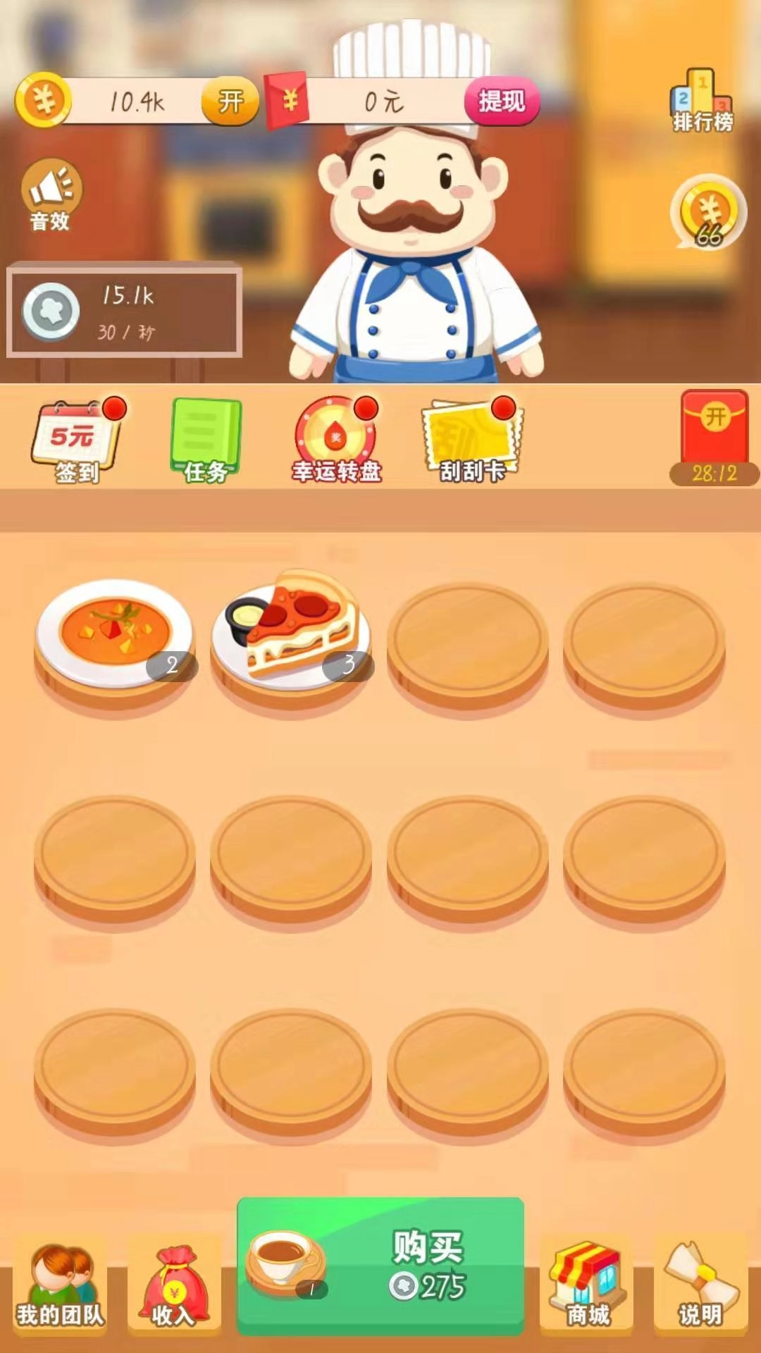 每天只要上线新菜品,接着合成高档菜,餐厅的菜就会自动为你赚钱了。