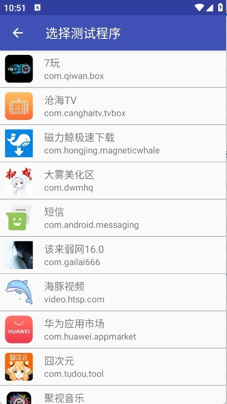 选择要测试的应用程序。
