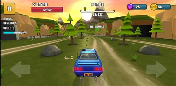 和其他跑酷类游戏不一样的地方在于,这里玩家操控的不是奔跑的人物,而是一辆吉普车,需要通过左右移动的方式来避开各种各样的障碍。
