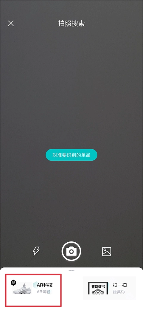 1、打开得物应用,在购买页面里点击搜索框右侧的相机图标