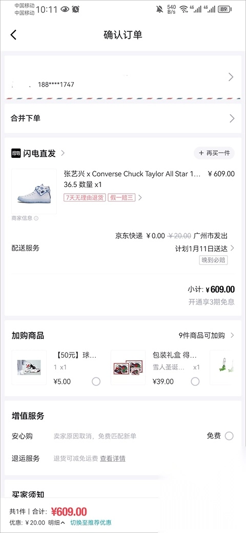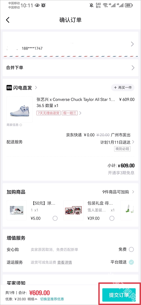 2、接着选择好鞋码,进入订单确认页面,核对完订单信息无误后,点击提交订单按钮即可。