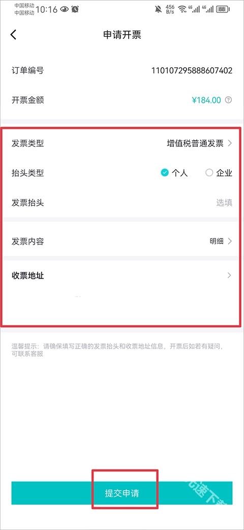 4、最后选择好发票抬头、类型以及地址,点击提交申请就可以了