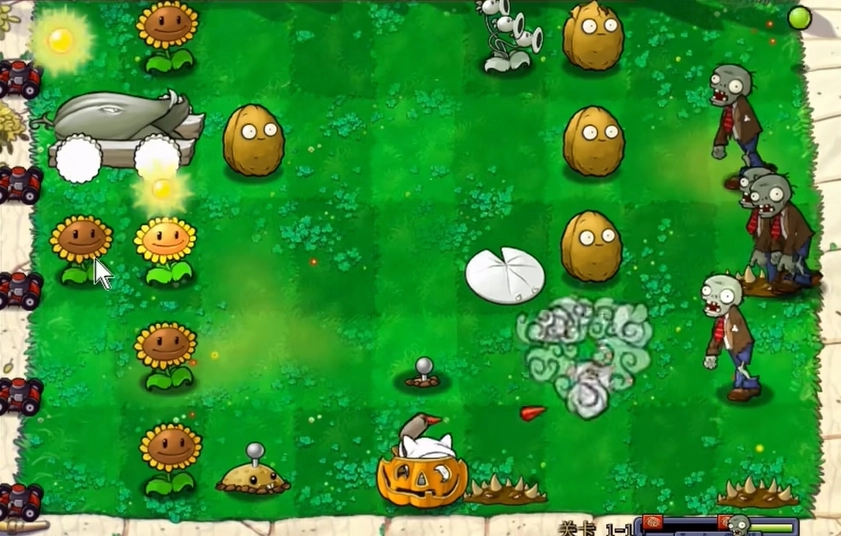 5、集齐4个红坚果后,最后一波就会变得非常轻松,只要“bang~bang~”炸上几下就能结束战斗,这样一来,95版植物大战僵尸的1-5关卡就顺利通关了。