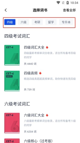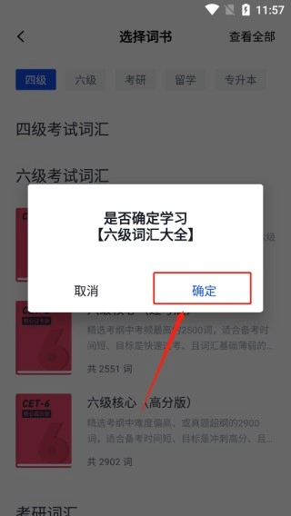 2、选择自己需要的点击,如六级词汇大全