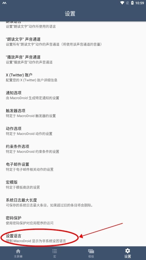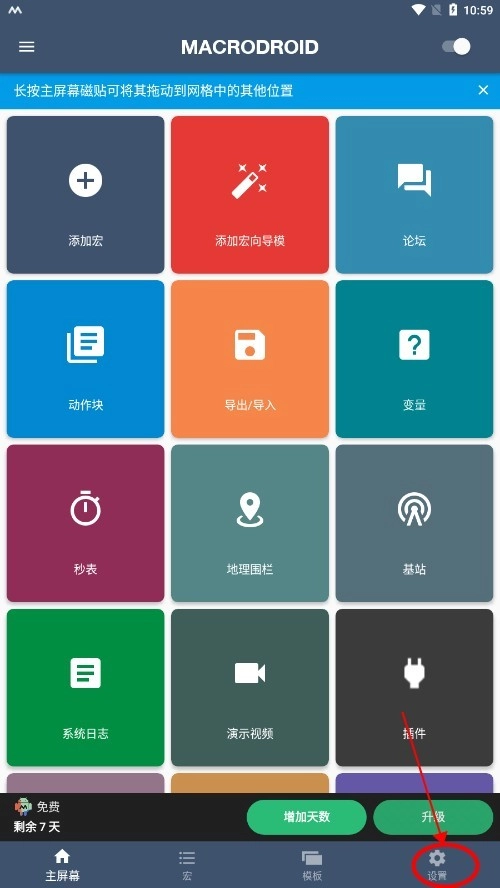 1、启动MacroDroid应用,进入主界面后,点击右下角的设置选项。