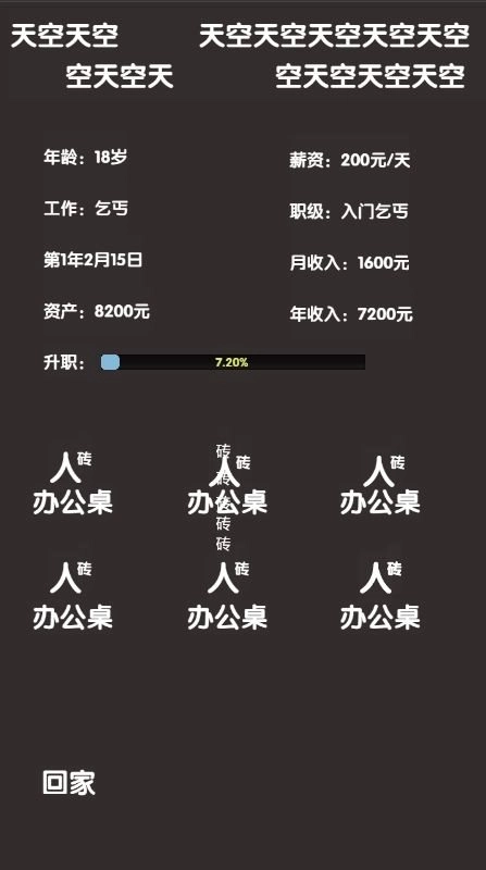 这是一款打工人模拟器,游戏里有不少职业可供挑选,不同职业对应的报酬存在差异,而且还会考验你在相关行业的天赋。