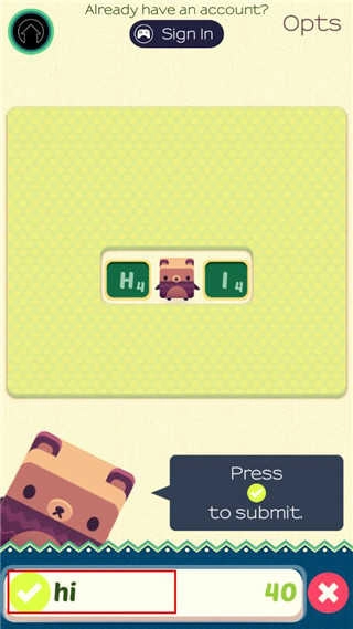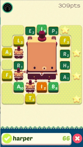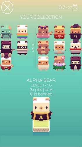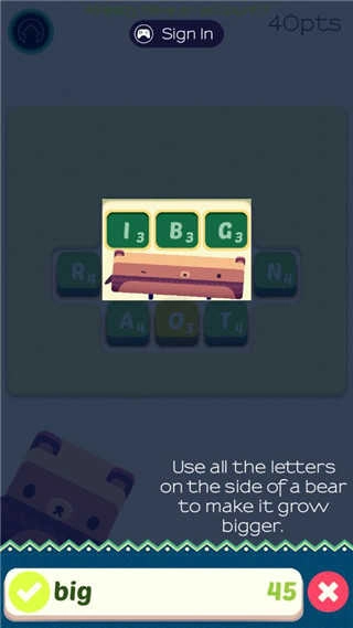 当你使用相邻的字母时,小熊就会出现。用的字母越多,小熊的体型越大,得分也越高。