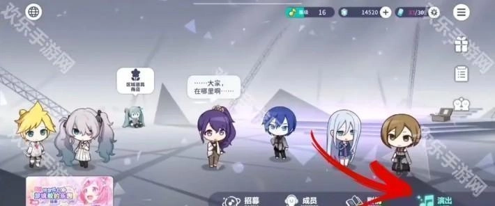 1、在游戏主界面点击右下角的“演出”选项,这里提供了单人演出和多人演出两种参与方式。