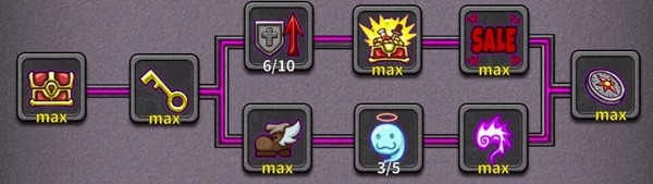 游戏内的增益效果包含:起始阶段额外生成宝箱、解锁初始时的盗贼角色、提升角色防御能力、加快移动速度、提高宝箱掉落频率、保留未消耗的灵魂资源、首次购买商品无需付费、首领敌人死亡后灵魂产出量上升、有机会获取特殊房间的方位提示。