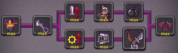 进入游戏时可直接获得武器,同时解锁初始铁匠功能;角色基础攻击能力得到提升,暴击触发概率也有所增加;初始武器的品质会自动提升一个档次;穿戴重甲时移动速度不再受到负面影响;每次进入新房间都会额外获得一枚炸弹;使用道具造成的伤害数值有所提高;当角色处于低血糖状态时会进入狂暴模式。