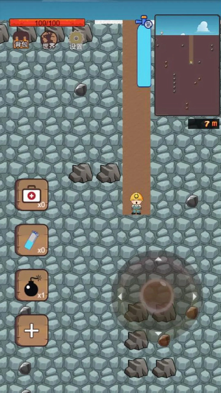 玩家可使用方向键往地下或左右挖土,往上不可挖土。
