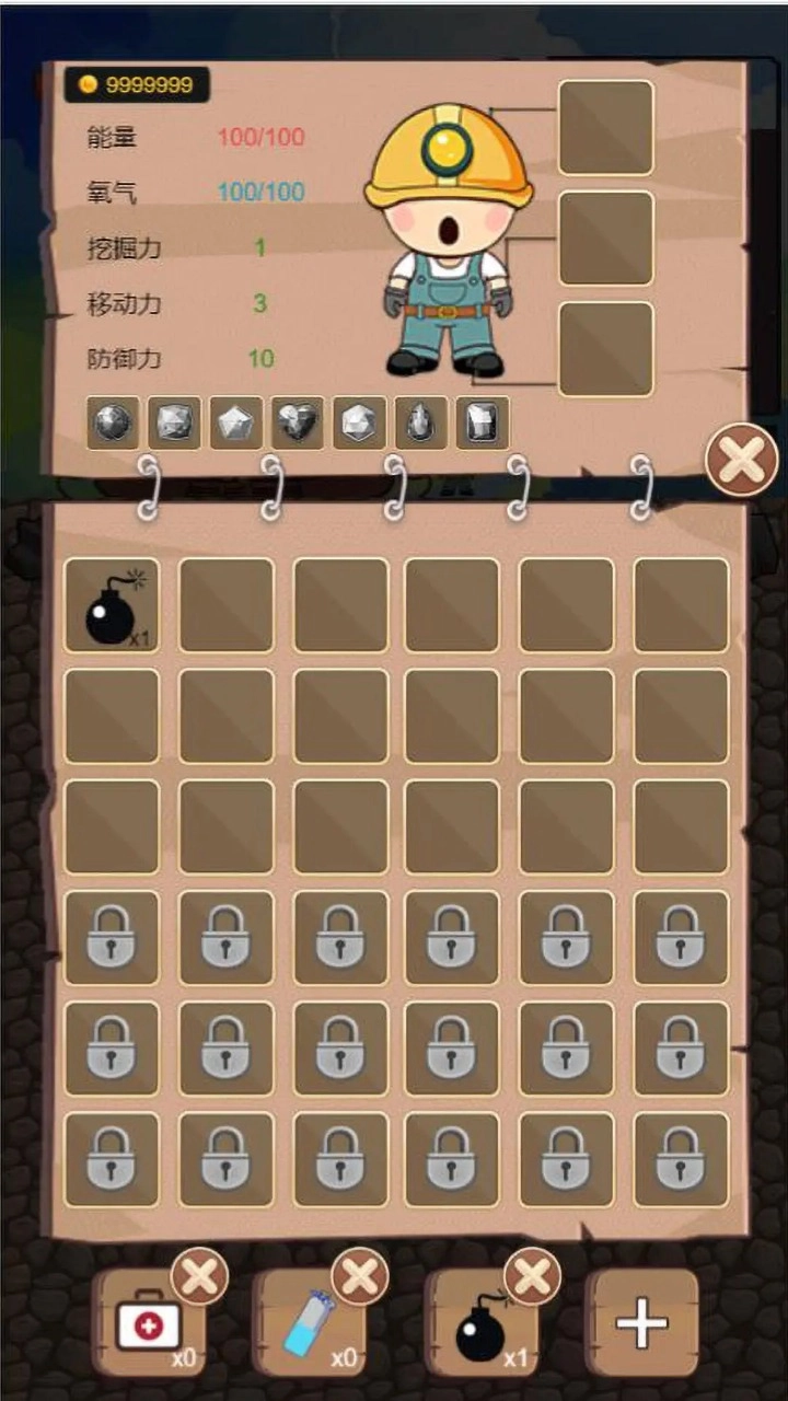 不停地开采矿物,把销售矿物所得的钱用来升级道具。