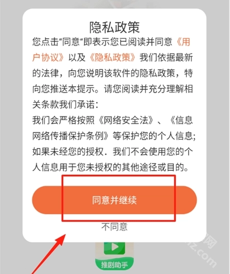 1、打开推剧助手软件,同意隐私政策后进入