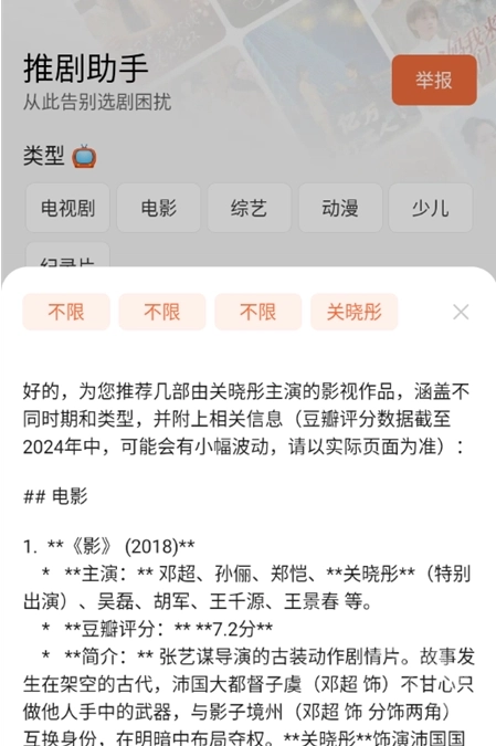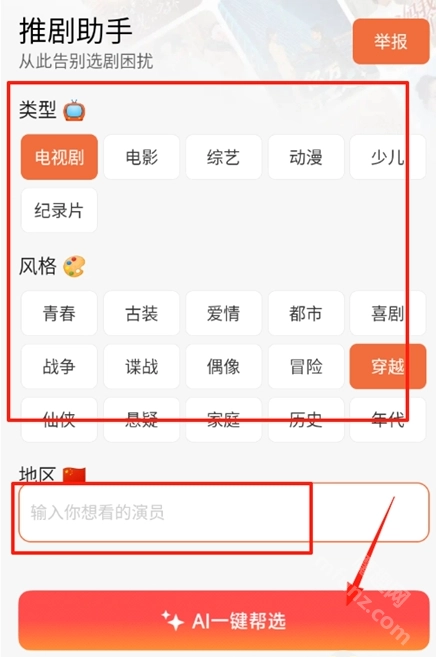 2、可以依据影视的类型、风格来挑选,也能输入演员姓名,让AI一键帮忙筛选