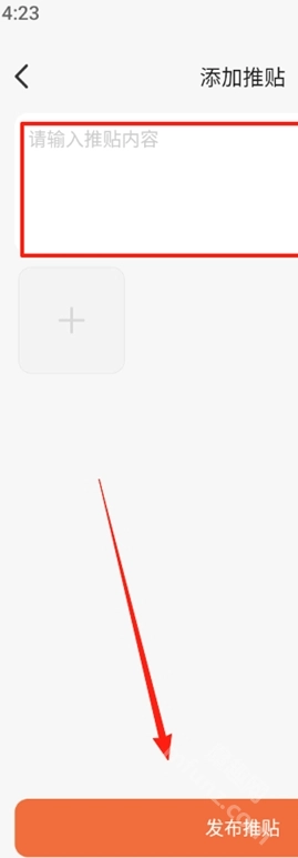 4、进入推帖页面,点击加号