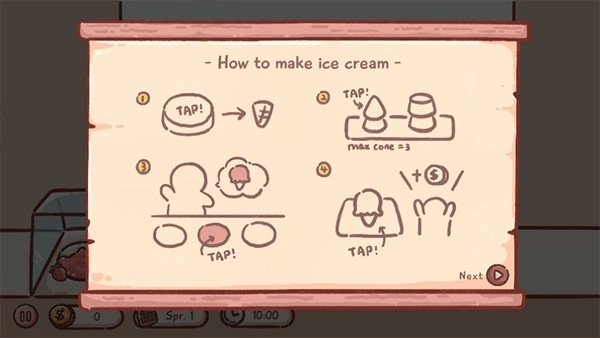 顾客会带着不同的情绪来到店里,比如有的处于“热恋”状态,有的则是“失恋”状态,玩家需要依据他们当下的情绪,挑选与之相契合的冰淇淋口味和装饰来完成制作。