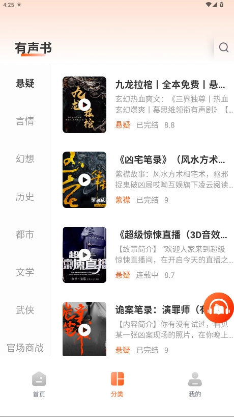 - 平台拥有海量有声读物资源,覆盖都市、言情、玄幻等丰富类型,能够充分满足不同用户的多元喜好。