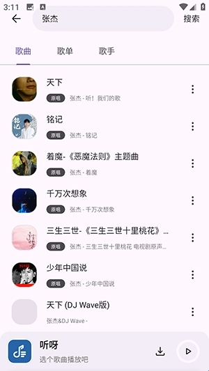 听呀是一款走简洁风格的音乐播放软件,各类音乐资源十分丰富,能让我们尽情享受音乐带来的愉悦。它还设有多个音乐榜单,像飙升榜、新歌榜、热歌榜等,每个榜单都保持着实时更新!听呀不仅可以在线听歌,还能收藏自己喜爱的歌曲,并且最高支持无损音质,让我们能清晰捕捉到歌曲里的每一处细节。另外,这款音乐播放器也支持导入本地音乐,各种常见的歌曲格式都能兼容。
