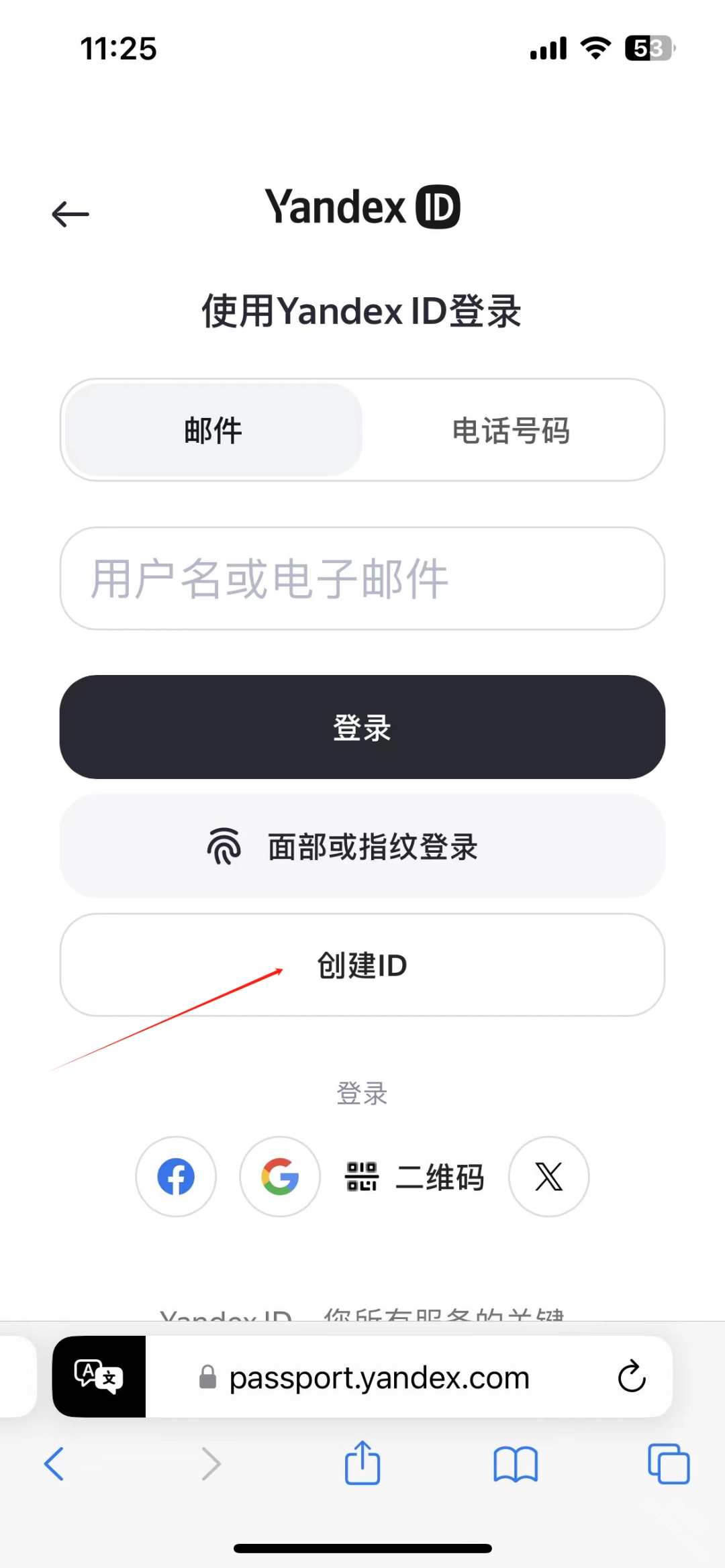 1. 启动Yandex应用,点击界面上的“登录”按钮,接着在弹出的选项中选择“注册”功能。