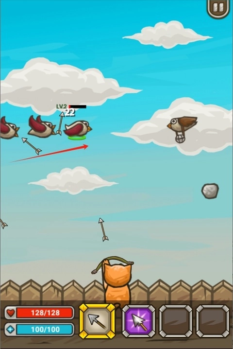 游戏操作十分简单,只需点击空中的小鸟即可发起攻击。成功通关后,玩家能获得经验值与游戏货币作为奖励;当经验累积到一定程度,等级就会提升,还能解锁技能点——你可以自由将技能点分配到不同属性上,以此强化自身的战斗能力。