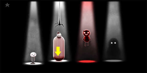 接下来用手按住左边的小丑玩偶,向下拖动使其被手握住,接着继续向下拉扯,直到玩偶被撕裂。