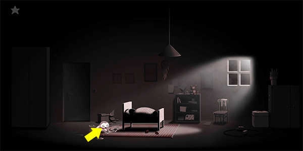 等他进入睡眠状态后,游戏会自动跳转场景,当画面切换到下方区域时,点击角色即可唤醒他。