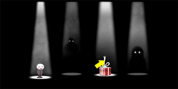 然后依照教程的提示,用手指向右滑动,控制小人移动,一直到能看到礼物盒为止。