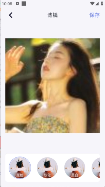 3、从相册中选择图片,选定对应的滤镜效果后,点击右上角的“保存”按钮即可完成处理。