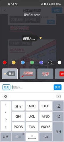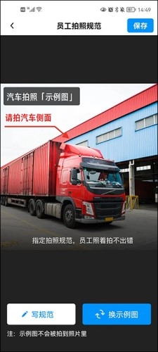4、点击【写规范】,输入拍照规范要求,然后点击【完成】按钮进行保存;