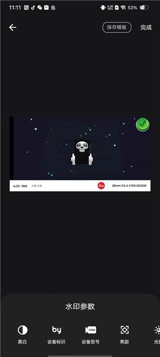 4、点击【编辑】按钮可对水印参数进行调整,参数调整完毕后,点击右上角的【完成】按钮即可。